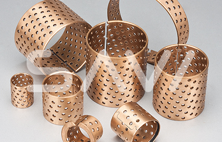 - 青铜基卷制轴承 该轴套以CuSn8青铜为基材卷制而成的一种具有承载高、耐磨性能好的经济型轴承。标准的产品工作表面布满规则的油孔,在起始运动时能较容易的形成油膜从而降低起始摩擦因数。主要运用于农用机械、建筑机械等高载低速场合。